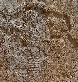 Napirisha and Kiririsha are presented to be a couple,[33] and are generally viewed as the divine couple of Anshan.[9] An inscription from Silhak-Inshushinak lists Hutran as their son,[34] although this is likely a later ideology.[35] One of the suggestions of the identity of the deities depicted on the Kurangum relief was that of Napirisha and Kiririsha, as the relief depicts one god and one goddess.[33]