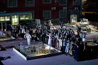 The Napoli Teatro Festival Italia is an international festival which takes place every year during the month of June in Naples, Italy. The Festival's organization selects, produces and commissions plays, exhibitions and artistic performances, involving artists from all over the world for the elaboration and representation of international and multicultural creations. Along with the artistic activities, the Festival also offers the possibility of creating new planning and production partnerships with national and international institutions, it promotes training courses and enhances historical monuments, which are used as the plays' locations. Moreover, the Festival promotes and produces the European Theatre Company, the first company whose members are professional actors from the European Union.