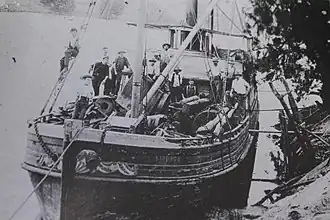 The vessel soon became a part of the small local community as indicated when its ships engineer Mr Greentree taking part in local sculling races at the time