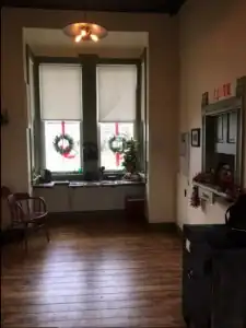 The Christmas decorated interior after the 2015 renovation.