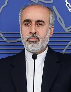 Nasser Kanaani (Persian: ناصر کنعانی) is an Iranian diplomat and the spokesman of the Ministry of Foreign Affairs of Iran from 2022 to 2024.[1][2] He was the head of Iran's interests protection office in Cairo from July 2018 to July 2022.