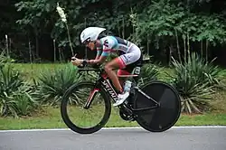She started the year participating in the Ironman 70.3 in Panama, ranking in the 14th place in 4:35 and winning 80 points climbing to the 181 in the WTC world rankings.[8] Méndez took the bronze medal in the SDQ 10k running competition held in Santo Domingo.[9] In April she received the athlete of year award in Triathlon by the Santiago de los Caballeros Guild of Sport Writers, along with Jorge Manuel Díaz.[10] Later, in May and June, she conquered the 19th place in Chattanooga and 11th place of Female Pros at Raleigh 70.3 both with a 4:51 time.[11][12] She won the Dominican Republic National Time Trial Championships in June, after winning the 30k Mirador Sur Park course with a time of 30:59.[13] She won the bronze medal in the Dominican Republic National Road Race Championships two days later, riding in Santiago de los Caballeros.[14] In July, she competed the Budapest 70.3 in Hungary, finishing in 8th place in the Female PRO category and obtaining her first Top 10 finish, with a time of 4:34.[15]