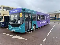 National Express West Midlands are responsible for the upkeep and maintenance of the Mobico Group's 'Health Bus', an employee benefit scheme free to use for all employees that travels across the Mobico Group's bus operations. Launched in 2014 using a converted Mercedes-Benz O405N single-deck bus, this scheme was upgraded in 2024 with the conversion of an Alexander Dennis Enviro200 MMC for use as the group Health Bus; featuring two in-built consultation rooms and a waiting room, the bus is operated by a health coach and a health coordinator, providing physical health checks to employees for their body mass index, body and fat, blood pressure, cholesterol and blood glucose levels.[63][64]