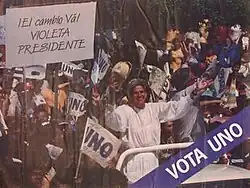 In the presidential election held on 25 February 1990, Violeta Barrios de Chamorro won 55% of the popular vote against Daniel Ortega's 41%.[3]