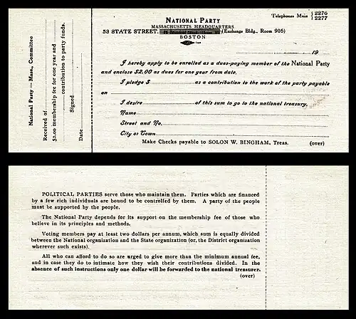 Basic dues in the National Party were $2 per year. The organization also sought additional "pledges" on the part of its members.