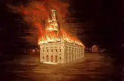 The Nauvoo Temple was the second temple constructed by the Church of Jesus Christ of Latter Day Saints.[2][3] The church's first temple was completed in Kirtland, Ohio, United States, in 1846. In the winter of 1846, when the main body of the church was forced out of Nauvoo, the church attempted to sell the building, finally succeeding in 1848. The building was damaged by arson and a tornado before being demolished.