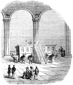 One report stated that on the east wall of the vestibule was an entablature, similar to the one in the facade, which read in bright gilded letters, "THE HOUSE OF THE LORD - Built by The Church of Jesus Christ of Latter-Day Saints - Commenced April 6th, 1841 - HOLINESS TO THE LORD."[12]