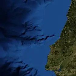 The Nazaré Canyon is a submarine canyon just off the coast of Nazaré, portuguese Oeste region, in the eastern North Atlantic Ocean. It is the largest submarine canyon in Europe,[1] reaching depths of about 5,000 metres (16,000 ft) deep and a length of about 230 kilometres (140 mi).[2]
