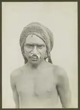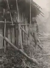 The Nduga tribe believes that their ancestors were from the Seinma region in Yahukimo Regency and later they migrated to the Baliem Valley.[4] Many explorations were conducted in highland Papua during the early 20th century. One of these was the Second South New Guinea Expedition led by Lorentz and composed of the Kamoro and Apo Kayan Dayak tribes in 1909–1910, which successfully met with representatives from the Pesegem tribesman in the south of Mount Trikora, although they failed to reach the Baliem Valley. The third expedition in 1912–1913, led by Herderschee, also managed to contact the Pesegem again. Pesegem is a Nduga-speaking group considered to be part of the Dani at the time. Additionally, the expedition team also encountered the Morup group, though they were not studied further.[6][7][8]
