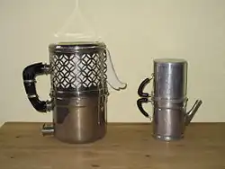 The Neapolitan flip coffee pot (Italian: napoletana or caffettiera napoletana, pronounced [kaffetˈtjɛːra napoleˈtaːna]; Neapolitan: cuccumella, pronounced [kukkuˈmɛllə]) or cafetière Morize is a drip brew coffeemaker for the stove top very popular in Italy and France until the 20th century. Unlike a moka express, it does not use the pressure of steam to force the water through the coffee, relying instead on gravity.