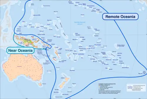 Near Oceania is the part of Oceania that features greater biodiversity, due to the islands and atolls being closer to each other. The distinction of Near Oceania and Remote Oceania was first suggested by Pawley & Green (1973)[1] and was further elaborated on in Green (1991).[2] The distinction is based on geology, flora and fauna. Near Oceania was also settled by humans at an earlier time than Remote Oceania was. Near Oceania includes the Bismarck Archipelago, the island of New Guinea, and the Solomon Islands (excluding Temotu Province). Sometimes, Australia is also included in Near Oceania.