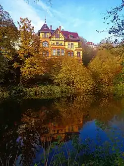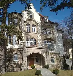 Villa Lust by district judge Ludwig Lust; in 1888 he transformed the fallow vineyards behind the villa into a small park called Ludwigslust,[29][30] "equipped with grotto, fountain basin and a luxurious cast-iron winter garden, which he had bought specially from an old Stuttgart villa"; it was the home of Konrad Knopp.[31]