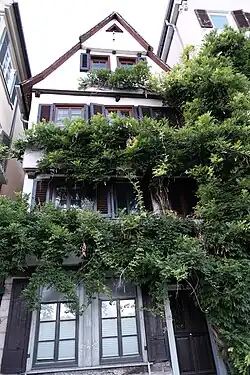 For many years, the buildings in Neckarhalde did not have a sewage system. Building number 7, in particular, became known for its hard-to-clean privy. As described in the "Caterpillar hymn" (Raupenhymne),[3] it was necessary as the winegrowers carried the smelly solids up the mountain to use it as fertilizer on strawberries and grapevines. All Tübingen wine growers are colloquially called "Caterpillars", even if they do not live in Lower Tübingen, while the expression "Gôgen" usually describes inhabitants of the lower city.[4]