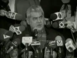 Carmona Estanga then suspended dialogue with the government and called an extraordinary assembly on 28 November. There he proposed that a national twelve-hour strike be held on 10 December, and he won the majority support of the business leadership, though the proposal was surprisingly rejected by Miguel Pérez Abad, the president of Fedeindustria.[9] On 4 May, Fedecámaras joined Confederación de Trabajadores de Venezuela, the main trade union; its Secretary General, Carlos Ortega, was strengthened after winning the elections against the Chavista candidate, Aristóbulo Istúriz. However, the opposition political parties were divided in their opinions on how to overcome the political crisis. Acción Democrática insists on designating a medical board that proves the mental incapacity of the president, Francisco Arias Cárdenas and his deputies call for a referendum, the Movement for Socialism calls for more meetings on the Constitution, while Justice First and the Catholic Church ask the government for a change of course.[10] All options come from a business perspective, since the parties still hadn't recovered from electoral setbacks in recent years.[2]