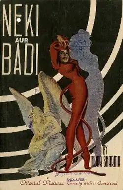 Neki Aur Badi (Hindi for " Goodness Grows") is a 1949 Indian Hindi-language patriotic drama film directed by Kidar Sharma.[2] The film stars Sharma with Madhubala and Geeta Bali.[3][4] It was the only film in which Sharma played the male lead role.[5]