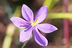 Nemastylis floridana is a species of flowering plant in the family Iridaceae known by the common names Florida celestial, fallflowering pleatleaf, and fallflowering ixia. It is endemic to Florida in the United States, where it faces many threats to its existence, but so far remains viable.[1]