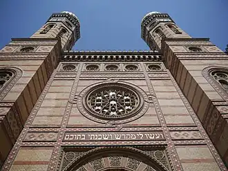 The functionaries who headed the Bureau sought to minimize differences with the Orthodox. They hoped, among others, to refute the opposing party's claim that they constituted a separate religion. The Hungarian government accepted their stance and recognized the communal associations only as "fractions" (irányzat), stressing that all three belonged "one and the same denomination" (vallásfelekezethez). The Neolog leadership adopted a careful line in matters of faith and practice.[7][8] Leopold Löw, who became increasingly independent in the 1860s, slid toward Geiger's positions and even boycotted the Congress, demonstrating sympathy for the Orthodox. He became estranged from the lay establishment of the Bureau.[9] David Philipson, in his 1907 history of the Reform movement, wrote on the different factions in Hungarian Jewry: "religiously they are practically on the same footing. Religious Reform as conceived in Germany and realized in the United States is unknown."[10] The 1911 Central Conference of American Rabbis' Year Book noted with disappointment: "in the Szegedin and Budapest reform temples, there are no mixed choirs, no family pews, no bareheaded praying and not even confirmation of boys and girls. As to the contents of the prayers themselves, they are the same as the Orthodox have."[11] When Theodor Herzl's confirmation took place in 1873, his family had to hold it at home rather than in the Dohány Street Synagogue.[12] The only Hungarian rabbi in the decades to come who administered some of the ritual changes proposed by Geiger was Ede Neumann, who served in Nagykanizsa from 1883 to 1918.[13] Another attempt for more radical innovations was made by the Pesth layman Ernő Naményi, who founded the Isaiah Religious Association (Ézsaiás Vallásos Társaság) in the early 1930s. They held services inspired by Einhorn's 1848 group in private homes, which included prayers in Hungarian. The local congregation never allowed them to formally organize.[14] In 1932, when Lily Montagu visited Budapest on behalf of the World Union for Progressive Judaism, she met several lay leaders but no Neolog rabbi attended for, as written by Raphael Patai, they "were all Conservative and hence opposed in principle to Liberal or Reform Judaism".[15]