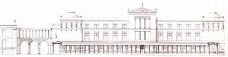 East façade of the Neues Museum with connection to the Altes Museum and the Colonnade, from Friedrich August Stüler, Das Neue Museum in Berlin, Riedel 1862