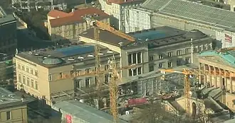 In the post-war period, the ruin of the Neues Museum in the Soviet-occupied part of the city was left decaying for a long period of time.[5] Other museums on Museum Island used the least damaged areas of the building for storage. Reconstruction work was started in 1986 by the East German government, but it was halted after the fall of the Berlin Wall and German reunification.[8] In the process historical parts of the building were lost. For instance, the last remnants of the Egyptian courtyard were eliminated.