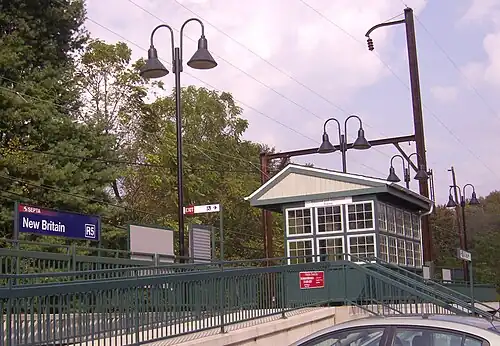New Britain station is a SEPTA Regional Rail station in New Britain, Pennsylvania. Located at Tamenend and Matthews Avenues, it serves the Lansdale/Doylestown Line. On December 18, 2011, weekend service was discontinued at this station due to low ridership. In the fall of 2012, New Britain was added back to the weekend schedule as a flag stop. The station continues to have full service on weekdays. In FY 2013, the station had a weekday average of 51 boardings and 58 alightings.[2]