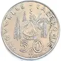 The overall design of the New Caledonia coins did not change from their introduction until their withdrawal in 2023. The obverse was identical to that of the French Polynesian coins. The only changes were the removal of the text Union Française after 1952 on the reverse, and the addition of the issuer initials "I.E.O.M" (Institut d'émission d'outre-mer) to the obverse in 1972.[2]
