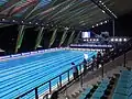 It hosts three swimming pools, an Olympic pool, a training pool,[10] and a diving pool. All pools have hot-steel siding and PVC linings installed. The aquatics venue also has an underwater sound system. Besides the bleachers on the ground floor. is a dryland training area[9]