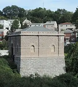 Distinctive New York City Watershed building in Yonkers for shaft of New Croton Aqueduct