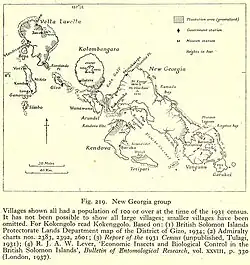 The New Georgia Islands are part of the Western Province of Solomon Islands. They are located to the northwest of Guadalcanal. The larger islands are mountainous and covered in rain forest. The main islands are New Georgia, Vella Lavella, Kolombangara (a dormant volcano), Ghizo, Vangunu, Rendova and Tetepare. They are surrounded by coral reefs and include the Marovo Lagoon.