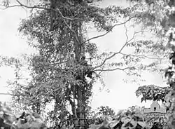 Ill-equipped and wearing an assortment of clothing and uniforms, their webbing was mostly of First World War vintage leather. Lacking helmets and entrenching tools, they carried packs and haversacks weighing in excess of 40 to 50 pounds (18 to 23 kg). With an average age of 35 years, most of the men had lived New Guinea for a considerable period of time. Highly individualistic and with limited military training, they lacked the coherence of a formed unit, while many brought their native labour lines with them to share the burden.[42] The men readied themselves to fight a guerrilla war from the hinterland against the expected invasion, as well as preparing to destroy key infrastructure to deny it to the Japanese. Meanwhile, another company formed at Lae under Captain Hugh Lyon for the same purpose. Both companies were ordered to commence a demolition campaign in the event of a Japanese landing, although Wau airfield was to be left intact for the time being.[43] NGVR personnel also helped rescue 217 survivors of Lark Force from Rabaul in February and March 1942.[44]