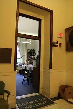 The secretary of state of New Hampshire is a constitutional officer in the U.S. state of New Hampshire and serves as the exclusive head of the New Hampshire Department of State. The secretary is third in line for succession as acting governor of New Hampshire, following the state's president of the Senate and speaker of the House.[1] The secretary oversees all state elections, including certifying the results, and keeps the official records of the state.[1] The secretary is, by statute, the only person who can authorize use of the State Seal.[2]