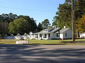 The New Hill Historic District is a national historic district located at New Hill, North Carolina, an unincorporated community in southwestern Wake County. The district encompasses the commercial and residential center and includes 2,820 acres (11.4 km2), 59 buildings, and one structure. The district developed between about 1860 and 1950, and includes notable examples of Colonial Revival and Tudor Revival style architecture. Notable buildings include the W. T. Roundy commercial complex, C.J. Bright's general merchandise store or New Hill Emporium, W. T. Roundy House (c. 1928), Duncan Lashley House (c. 1860), John Bright House (c. 1912), New Hill Baptist Church (c. 1888), Glass-Gardner House (c. 1890), and several farm complexes.[2]