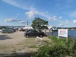 Several ferry services run from docks on Ferry Street just north of the station. The Cross Sound Ferry runs to Orient Point on Long Island with approximately hourly service year-round. The Block Island Fast Ferry, a high-speed catamaran to Block Island, runs several daily round trips during the summer months. The Fishers Island Ferry offers year-round local service to Fisher's Island, about 5 miles offshore, with multiple daily trips.[2]