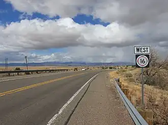 State Road 16 (NM 16) is a 10.5-mile-long (16.9 km) state highway in the U.S. state of New Mexico. It runs from NM 22 near Pena Blanca to Interstate 25 (I-25)/ U.S. Route 85 (US 85).