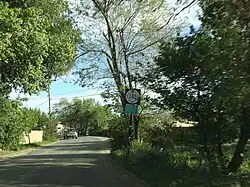 Promptly after its sharp turn to the east, NM 240 heads east–northeasterly (running a bit north of and roughly parallel with the Rio Pueblo De Taos) and promptly connects with the south end of Blueberry Hill Road. About 0.6 miles (0.97 km) later NM 240 connects with the southeast end of Blueberry Bluff road and then the southeast end of Cottom Road, just as the state road crosses over the Acequia Madre del Prado.[4] After the canal crossing, NM 240 jogs very briefly to the southeast before connecting with the north end of Rafael Road and resuming its east–northeasterly course. Approximately one-half mile (0.80 km) later, NM 240 crosses over the Rio Pueblo De Taos again. After connecting with the north end of Callejon Road, crossing Hacienda Road/Adrienne Lane, NM 240 connects with north ends of Pacheco, Duran, and Francisco lanes. After crossing Don Robert road/Francisco Vigil and Christina Garcia lanes (the two lanes join at their northern ends at their intersection with NM 240), the state road connects with the north end of Tino Lane and then the south end of Camino De Liebre before crossing Lavadia Lane/La Vega Lane. After connecting with the south end of Upper Ranchitos Road, NM 240 heads easterly, diverging from the northeasterly upstream course of the Rio Pueblo De Taos. Roughly one-half mile (0.80 km) to the east, NM 240 enters the city of Taos.[3]