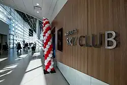 Louis Armstrong New Orleans International Airport is located to the west of downtown, in the city of Kenner. As of 2023, the airport is currently served by fifteen airlines.[35] Domestic nonstop service is provided to Akron, Atlanta, Austin, Baltimore, Bentonville, Boston, Charleston, Charlotte, Chicago (O'Hare and Midway), Cincinnati, Columbus, Dallas (DFW and Love Field), Denver, Detroit, Ft. Lauderdale, Ft. Myers, Hartford, Houston (Bush Intercontinental and Hobby), Jacksonville, Kansas City, Las Vegas, Long Beach, Louisville, Los Angeles, Miami, Minneapolis, Nashville, New York (JFK, LaGuardia, and Newark), Norfolk, Orlando (Orlando International and Sanford), Philadelphia, Pittsburgh, Phoenix, Raleigh, Richmond, Salt Lake City, San Antonio, San Diego, San Francisco, Savannah, Seattle, St. Louis, Tampa, Tulsa, and Washington DC (Reagan National and Dulles). International nonstop service is provided to Cancun, London, Montreal, San Pedro Sula, and Toronto.[36]