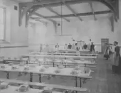 By today's standards, meals were inadequate and monotonous, however by the standards of the day, they were nutritious. Even in a private home, a child might expect to have just bread and milk for breakfast. Müller fed his children bread, with treacle or dripping; oatmeal; potatoes and other vegetables; stew; corned beef; rice.[41] W Elfe Taylor notes that "The food of the Orphans at breakfast is always oatmeal porridge; they use milk with it. No doubt this wholesome food is one cause of the healthy, ruddy appearance of the Orphans generally; for notwithstanding a strong prejudice against it in this country, a more wholesome, nutritious article of diet certainly does not exist. The dinner provided for the children varies almost every day. Monday there is boiled beef; Tuesday, soup, with a good proportion of meat in it; Wednesday, rice-milk with treacle, Thursday they have boiled leg of mutton; the following day they have soup again, and on Saturday bacon; on Sundays they always dine on rice with treacle in order that as few as possible may be kept from attending public worship. The Orphans breakfast at eight o’clock, dine at one, and take tea at six."[42]