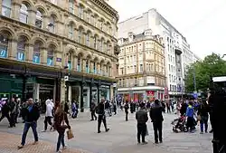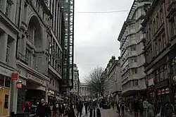 New Street is a street in central Birmingham, England. It is one of the city's principal thoroughfares and shopping streets linking Victoria Square to the Bullring Shopping Centre. It gives its name to New Street railway station, although the station has never had direct access to New Street except via Stephenson Place and latterly Grand Central shopping centre.