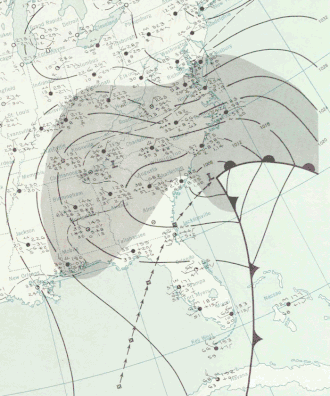 ![]() Surface analysis of the cyclone during time of heaviest snow in Tennessee[1] | |