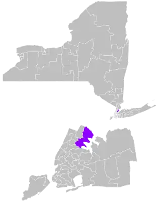 The district overlaps with New York's 13th, 14th, 15th, and 16th congressional districts, and with the 78th, 80th, 81st, 82nd, 84th, 85th, 87th, 88th, and 89th districts of the New York State Assembly.[5]