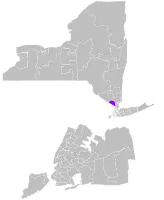 The district is located entirely within New York's 17th congressional district, and overlaps with the 95th, 96th, 97th, and 98th districts of the New York State Assembly.[8]