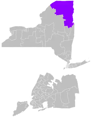 The district is located in New York's 21st congressional district, and overlaps with the 107th, 113th, 114th, 115th, and 118th districts of the New York State Assembly.[5]