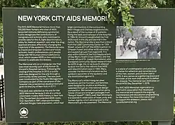- ^ "The New York City AIDS Memorial". The New York City AIDS Memorial. Archived from the original on October 26, 2018. Retrieved December 1, 2018.