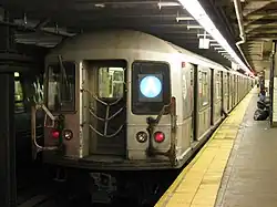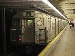 1. ^ Redbirds are R26, R28, R29, R33, and R36. All of these cars were replaced by more modern subway trains (R142/R142As) between 2001 and 2003, though many R33 cars are still in use as work trains. Sometimes, the term "Redbird" would also be used on the R27 and R30 cars as they were repainted Gunn red during the late 1980s and early 1990s before their retirement in 1993. These were known as the BMT Redbirds. Sixteen R17s were also given this paint scheme in 1985/86, but were retired by 1988, well before the name "Redbird" caught on.