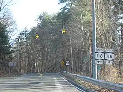 Ramps from NY 129 to the Taconic State Parkway were removed by the East Hudson Parkway Authority in November 1969, to be replaced with a bridge. This required a shutdown of NY 129 and required drivers going north to Underhill Avenue.[15] In fall 1988, the original Hunter Brook Bridge (less than 19 feet (5.8 m) wide) was replaced, as it was never designed to take heavy traffic such as concrete-mixing trucks.[5] Between 1988[16] and 1991, the traffic circle between NY 118 and NY 100 was removed in favor of a three-way intersection between the two highways.[17]
