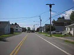 At Pratt Street, the first cross street that NY 276 meets in Rouses Point, the route turns eastward, following Pratt Street toward the center of the village. After one block, the route crosses the Delaware and Hudson Railroad and serves Rouses Point's Amtrak station at the junction of Pratt and Delaware Streets. NY 276 remains on Pratt Street for another two blocks to the commercial center of the village, where it terminates at a junction with US 11 (Lake Street) on the shores of Lake Champlain.[4] NY 276 serves as a truck route for traffic on US 11 as it bypasses a low-clearance railroad overpass on US 11 south of the village.[5]