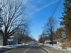 NY 290 stretching away from its terminus on NY 5 at Mycenae