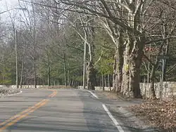 A request by the state to dismiss the suit was denied in August 1966,[11] and the case was eventually heard by the state Court of Appeals, the highest court in the state. In the meantime, the state built the easternmost mile (1.6 km) of the new alignment, which was not affected by the lawsuit. On July 7, 1967, the court ruled 6–1 in favor of the Sleepy Hollow Valley Committee.[12] As a result, the western half of the new road was moved an additional mile to the north, bypassing North Tarrytown completely.[13] The new alignment of NY 117 was completed in November 1970 and its former alignment along Bedford Road was redesignated as NY 448.[2][14][15]
