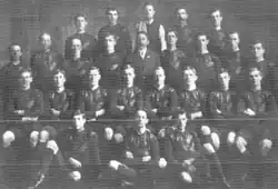 E. George, F.A. Lording, W. Monteith, J.G. Marshall, Tongue, H. Fletcher, J.J. Abfalter (Auckland), P.H. Elvidge, S.G. Darby, A. Swann (Waihi), M. Bonas, D. Patrick, E. Furness, A. McGrath, L.L. Paull (Wellington), George Dempster, H.L. West, T.J. "Tom" Wright (captain), H. Wilkinson, A. Porter, A. Fisher, Paisley, F. Ross (Christchurch), with emergencies, Burns, Welch, and L.A. Breese from Auckland, and Grant, and T. Smith.[25][26][27][28]