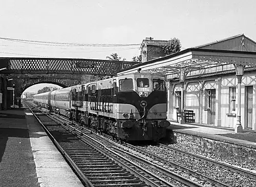 Newbridge railway station (Irish: An Droichead Nua) is a station on the Dublin to Cork railway line and Dublin Commuter Service.[1] It serves the town of Newbridge in County Kildare, Ireland and lies approximately 4 kilometres (2.5 mi) from the Irish Army Curragh Camp.