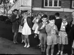The levelling and clearing of Newmarket State School's grounds was an ongoing project during the 1930s. Past students recalled that men were employed on the excavation of the Newmarket State School oval and filling the gully, under the Unemployment Relief Scheme. In 1932, three men were given two days' relief work clearing lantana and stumps from the school grounds.[10][27] A concrete cricket pitch was completed in 1932, laid down entirely by voluntary labour and was subsequently available for hire to the public.[28][29] Fundraising fetes and balls for the beautification of the school surroundings took place.[30][31] During 1933 the School Welfare Association raised £600 for school improvements.[32] In 1939 two new tennis courts were opened.[33][1]
